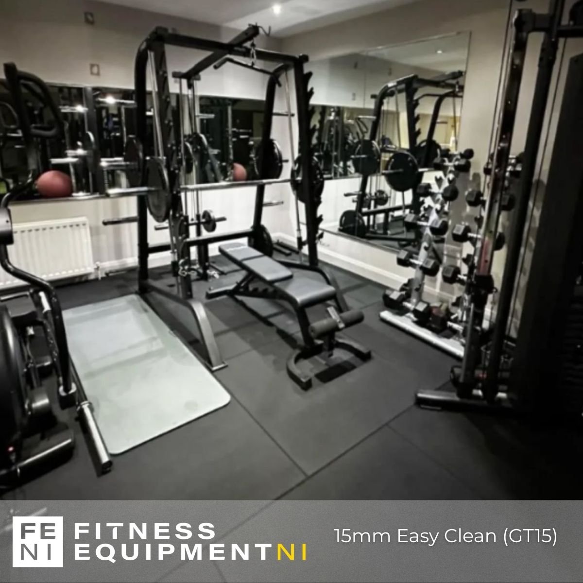 The 15mm tiles are suitable for home and commercial gyms. They will protect both the subfloor and the equipment whem in use. If you are planning on dropping more that 150kg or doing Olympic lifting then we recommend going to a thicker tile. We can cater up to 70mm so whatever your flooring needs we have you covered.