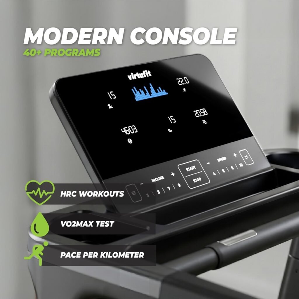 • Modern Console & Training Feedback – Track your speed, distance, time, calories and heart rate while enjoying a clear, intuitive console layout.